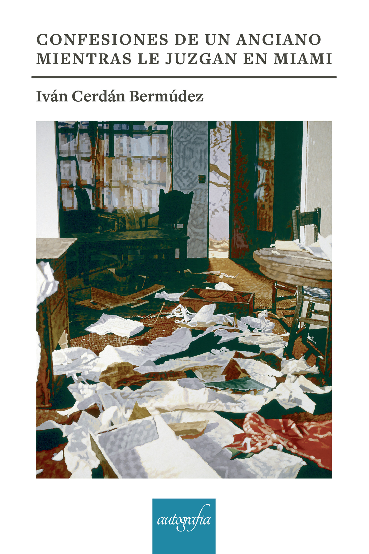 CONFESIONES DE UN ANCIANO MIENTRAS LE JUZGAN EN MIAMI ES MÁS QUE UNA CONFESIÓN, QUE UN JUICIO Y QUE SEA EN MIAMI. PORQUE LA ACCIÓN PUEDE OCURRIR EN CUALQUIER LUGAR. EN LA LITERATURA DE IVÁN CERDÁN TODO ES ARRIESGADO, PULVERIZA LOS GÉNEROS, LOS MUEVE Y LOS RETUERCE, COMO LE RETUERCE AL LECTOR EMPEÑADO EN QUE LA CONVULSIÓN DE LA REALIDAD, EL INTERIOR CAOS DE CADA UNO, LAS PALABRAS QUE SON LAS SOMBRAS QUE ALETEAN EN CADA PÁGINA SE TRANSFORMEN O METAMORFOSEEN COMO ESTELAS EXTRAVAGANTES QUÉ PERSONAJES SOÑADOS Y VIVIDOS PUEBLAN LOS ESPACIOS INVISIBLES DE ESTA OBRA – OCIOSAS Y ATORMENTADAS.