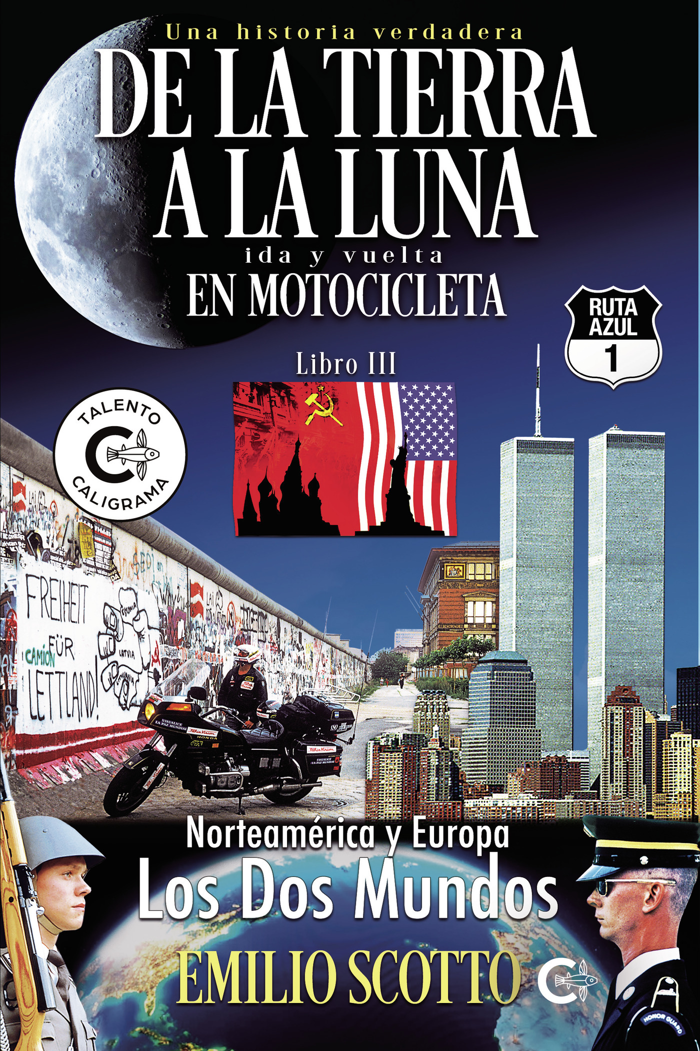 SIGUIENDO LA SAGA DEL QUE ES CONSIDERADO EL VIAJE DEL SIGLO, EMILIO SCOTTO CONTINÚA HACIÉNDONOS VIVIR EN PRIMERA PERSONA Y TIEMPO PRESENTE SU IMPRESIONANTE EPOPEYA ALREDEDOR DEL MUNDO. EN ESTE TERCER LIBRO NOS LLEVA POR LOS CAMINOS Y PAÍSES DEL PRIMER MUNDO, AMÉRICA DEL NORTE, PRIMERO, PARA FINALMENTE CRUZAR EL ATLÁNTICO Y ADENTRARNOS EN UNA EUROPA QUE, DESPUÉS DE LA II GUERRA MUNDIAL, POCO HABÍA CAMBIADO. AQUELLA EUROPA COMUNISTA, LA DE LA GUERRA FRÍA, DEL MURO DE BERLÍN, DE LAS DOS ALEMANIAS, DEL DICTADOR CEAUESCU, DE UNA YUGOSLAVIA EN VÍAS DE DESAPARECER, DE LA CORTINA DE HIERRO, DE LA URSS, DE LA STASI, E INCLUSO DE MARADONA, EN SU MAYOR MOMENTO DE GLORIA. TODO BENDECIDO POR EL PAPA POLACO, KAROL WOJTY+A, JUAN PABLO II.UNA VEZ MÁS, DE LA TIERRA A LA LUNA IDA Y VUELTA EN MOTOCICLETA NOS TRANSPORTA BRILLANTEMENTE A UN MUNDO QUE YA NO EXISTE MÁS, PERO QUE FUE TAN DURO COMO REAL DURANTE AQUELLOS ÚLTIMOS AÑOS DEL SIGLO XX.COMO NOVEDAD, ESTE LIBRO TERMINA CON EL COMIENZO DEL LIBRO SIGUIENTE DE LA SERIE, EL IV, JUSTO ENTRANDO AL CONTINENTE NEGRO, ÁFRICA, DEJÁNDONOS CON GANAS DE SABER MÁS. ACOMÓDATE EN TU SILLÓN, SÍRVETE UN BUEN VASO DE VINO, CERVEZA O CHAMPAN, ABRE TU MENTE, Y DÉJATE TRANSPORTAR A LEJANAS TIERRAS, ANTIGUAS CIVILIZACIONES, RAROS PERSONAJES E INCREÍBLES SITUACIONES. RECUERDA QUE ESTE LIBRO QUE TIENES EN TUS MANOS ADEMÁS DE LEERLO, CASI PUEDES ESCUCHARLO.