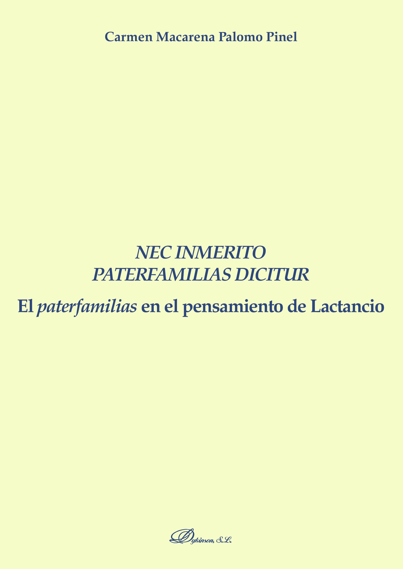 LA OBRA QUE AQUÍ SE PRESENTA ES EL RESULTADO DE UN INTENSO TRABAJO DE INVESTIGACIÓN REALIZADO DURANTE CASI SIETE AÑOS POR LA DOCTORA, CARMEN PALOMO PINEL, EN TORNO A LA INTERESANTE VIDA Y OBRA DE LUCIUS CAECILIUS FIRMIANUS LACTANTIUS, MÁS CONOCIDO COMO LACTANCIO.LA AUTORA ILUMINA DE MODO EXHAUSTIVO LOS DIFERENTES ASPECTOS DEL PENSAMIENTO DE LACTANCIO (ANTROPOLÓGICOS, ÉTICOS, JURÍDICOS Y POLÍTICOS), SIRVIÉNDOSE POR PRIMERA VEZ DE LA LUZ QUE PROPORCIONA SU ENFOQUE DESDE EL CONCEPTO JURÍDICO DE PATERFAMILIAS QUE, SEGÚN ELLA, CONSTITUYE UNA AUTÉNTICA PIEDRA ANGULAR DE LA DOCTRINA LACTANCIANA.CUANDO SE PIENSA EN LA CONFLUENCIA DEL PENSAMIENTO ROMANO Y CRISTIANO, SE OLVIDA QUE SEMEJANTE FUSIÓN NO PUDO REALIZARSE DE MODO AUTOMÁTICO O INMEDIATO. HIZO FALTA, EN EFECTO, EL ESFUERZO DE AUTORES QUE, BASADOS EN LA RAZÓN Y CON ESPÍRITU PERSUASIVO, MOSTRARAN A UNOS Y OTROS LA COMPATIBILIDAD Y MUTUA COMPENETRACIÓN DE IDEAS APARENTEMENTE EN CONSTANTE COLISIÓN, Y GRACIAS A ESE LABOR PUDIERON, EN FIN, AFIRMARSE LAS BASES FUNDAMENTALES DE LA CIVILIZACIÓN OCCIDENTAL: EL PENSAMIENTO GRIEGO, LA CIENCIA JURÍDICA ROMANA Y LA TRADICIÓN JUDEOCRISTIANA. UNO DE ELLOS FUE, SIN DUDA, LACTANCIO.